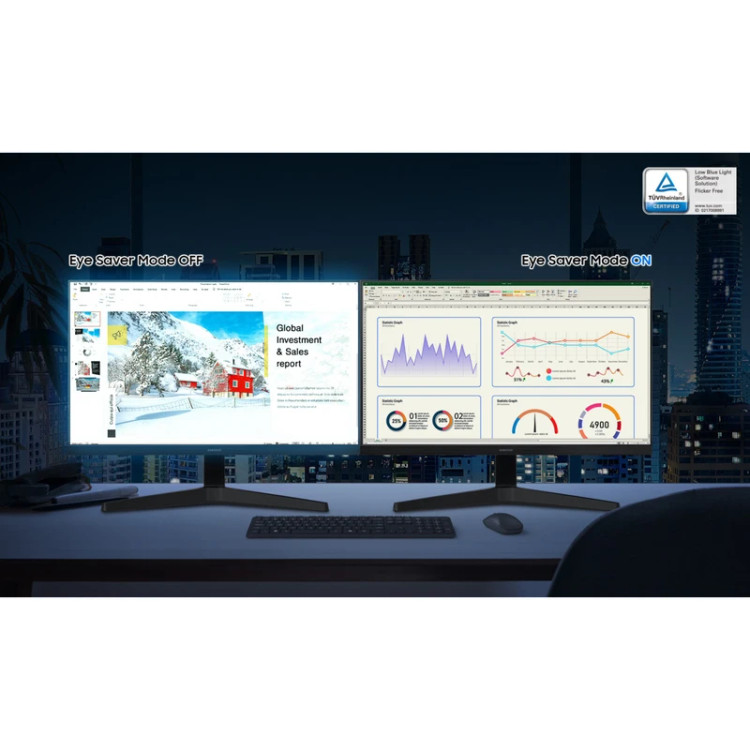 یکی از ویژگیهای برجستهی LS22C310EAMXUE، طراحی بدون حاشیه در سه طرف (بالا، چپ و راست) آن است. این طراحی نهتنها ظاهری مدرن و شیک به مانیتور میبخشد، بلکه باعث میشود تا تمرکز کاربر بیشتر بر روی محتوای در حال نمایش باشد و تجربهی بصری فراگیرتری را ارائه دهد. این ویژگی بهخصوص در چینشهای چندمانیتوره اهمیت پیدا میکند، جایی که مانیتورها بهصورت یکپارچه و با حداقل فاصله در کنار هم قرار میگیرند و تصویری پیوسته را ایجاد میکنند. ابعاد این مانیتور (بدون پایه) ۴۸۸.۴ در ۲۹۴.۲ در ۴۱.۱ میلیمتر و وزن آن ۳.۷ کیلوگرم است که آن را به گزینهای مناسب برای فضاهای کاری کوچک یا میزهای شلوغ تبدیل میکند.