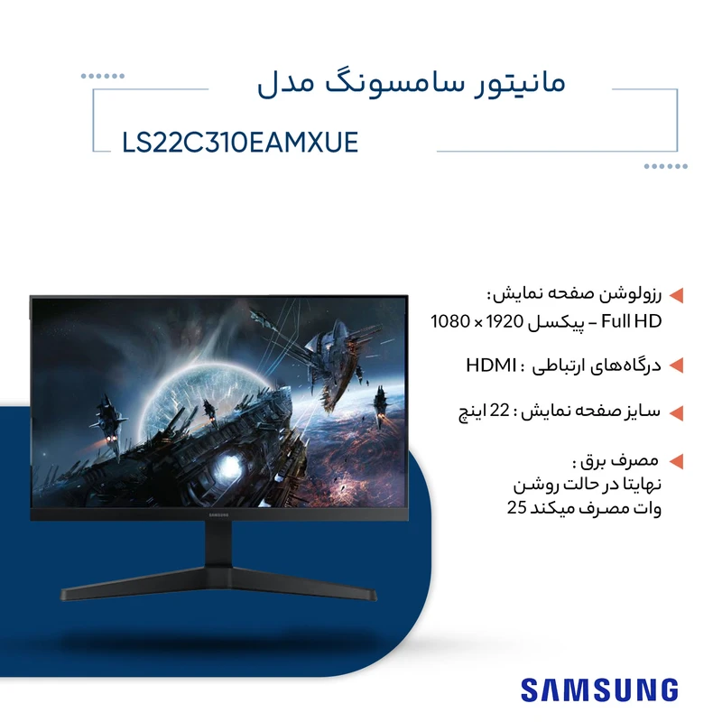یکی از ویژگیهای برجستهی LS22C310EAMXUE، طراحی بدون حاشیه در سه طرف (بالا، چپ و راست) آن است. این طراحی نهتنها ظاهری مدرن و شیک به مانیتور میبخشد، بلکه باعث میشود تا تمرکز کاربر بیشتر بر روی محتوای در حال نمایش باشد و تجربهی بصری فراگیرتری را ارائه دهد. این ویژگی بهخصوص در چینشهای چندمانیتوره اهمیت پیدا میکند، جایی که مانیتورها بهصورت یکپارچه و با حداقل فاصله در کنار هم قرار میگیرند و تصویری پیوسته را ایجاد میکنند. ابعاد این مانیتور (بدون پایه) ۴۸۸.۴ در ۲۹۴.۲ در ۴۱.۱ میلیمتر و وزن آن ۳.۷ کیلوگرم است که آن را به گزینهای مناسب برای فضاهای کاری کوچک یا میزهای شلوغ تبدیل میکند.