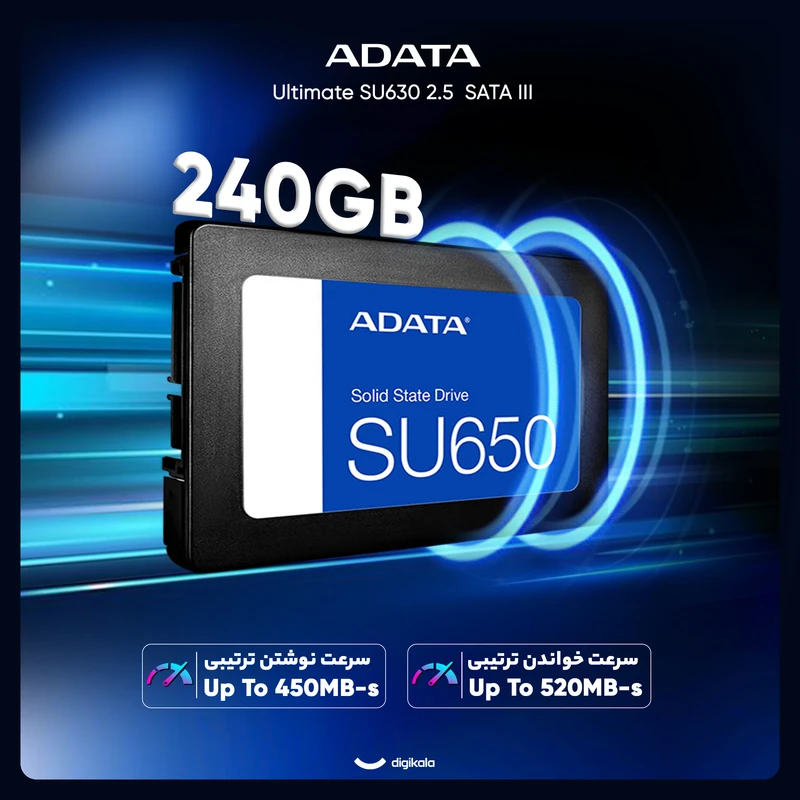 حافظه اس اس دی «Ultimate SU630» از سوی برند مطرح «ای دیتا» (ADATA) روانهی بازار شده است. این محصول در واقع یک SSD با ظرفیت 240 گیگابایت است. این اس اس دی از طریق رابط SATA3.0 به کامپیوتر متصل میشود و میتواند با سرعت زیاد به انتقال اطلاعات بپردازد. حافظههای SSD برخلاف هارددیسکها برای انجام پردازشهای مربوط به ذخیرهسازی اطلاعات از هیچ قسمت حرکتی استفاده نمیکنند. این موضوع باعث مقاومت آنها دربرابر شوک میشود. حافظهی SSD ای دیتا مدل Ultimate SU630 میتواند میزان زیادی از شوک را تحمل کند. فرم فاکتور این حافظه 2.5 اینچی است که بهراحتی میتوان آن را جایگزین هارددیسک لپتاپ کرد. سرعت خواندن اطلاعات به صورت ترتیبی برابر به 540 مگابایت بر ثانیه و سرعت نوشتن در آن به 450 مگابایت برثانیه میرسد. سرعت زیاد انتقال اطلاعات در SSDها باعث انجام سریع پردازشها در کامپیوتر میشود. همچنین به یاری مصرف انرژی کمترشان نسبت به هارددیسکها، میتوان شارژدهی بیشتری را از باتری لپتاپ انتظار داشت. ظرفیت 240گیگابایتی این حافظه برای کاربرانی که اطلاعات زیادی برای آرشیوکردن در کامپیوتر خود دارند مناسب است.