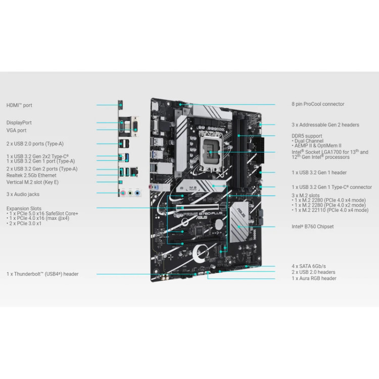 مادربرد ASUS PRIME B760-PLUS از نسل جدید است که پشتیبانی از DDR5 و پردازندههای نسل 12، 13 و 14 اینتل را دارد، و امکانات قابل توجهی مانند ۴ اسلات رم و ۳ پورت M.2 فراهم میکند که آن را گزینه مناسبی برای ارتقاء در آینده میسازد. برخی کاربران از عدم وجود وای فای و بلوتوث در این مدل انتقاد کردهاند، و همچنین نیاز به آپدیت BIOS برای بهرهبرداری کامل از امکانات و پشتیبانی از پردازندههای نسل 14، دیگر نکات منفی است. در مجموع، این مادربرد عملکرد رضایتبخشی ارائه میدهد و برای کاربران با بودجه متوسط و نیازمند سیستم قدرتمند و قابل ارتقاء بسیار مناسب است.