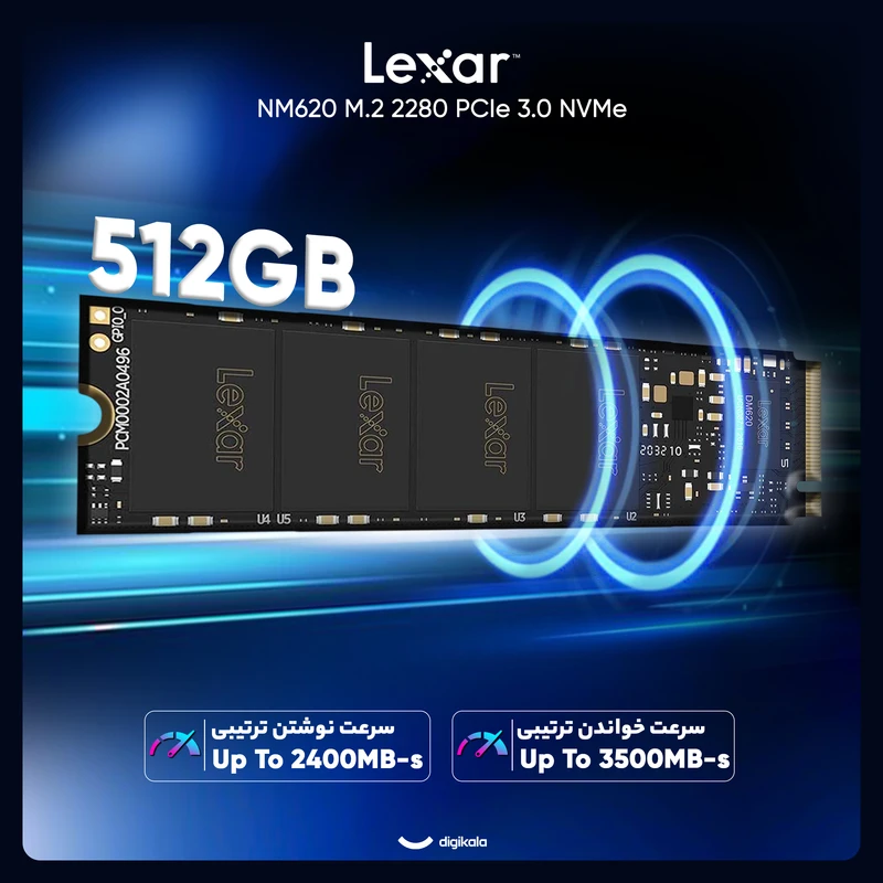 حافظه اس اس دی اینترنال لکسار مدل NM620 M.2 2280 NVMe ظرفیت 512 گیگابایت