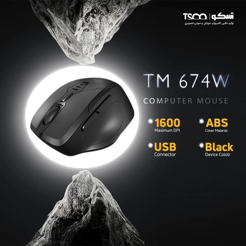 در قلب ماوس بیسیم تسکو TM674W، اتصال بیسیم مبتنی بر فرکانس 2.4 گیگاهرتز قرار دارد؛ استانداردی که تضمینکننده ارتباطی روان و بدون قطعی حتی در فواصل تا ده متر است. استفاده از دانگل USB برای اتصال، فرایند راهاندازی را ساده کرده و نیاز به نصب درایور یا تنظیمات اضافی را از میان برداشته است. این ویژگی، TM674W را به انتخابی مناسب برای کاربران در محیطهای کاری یا تحصیلی تبدیل میکند که به اتصال پایدار و بیوقفه نیاز دارند. ماوس TM674W از سنسور نوری KA8 بهره میبرد که امکان تغییر حساسیت را در سه سطح 800، 1200 و 1600 DPI فراهم میسازد. یکی از نکات قابلتوجه در این مدل، دوام کلیدهاست که تا سه میلیون بار فشردهسازی را بدون افت عملکرد تضمین میکند. در طراحی این ماوس، بهینهسازی مصرف انرژی نیز مورد توجه قرار گرفته است. تغذیه از طریق یک باتریقلمی (AA) انجام میشود و وجود کلید خاموش/روشن، به کاربر اجازه میدهد تا در زمانهایی که استفادهای از دستگاه ندارد، مصرف باتری را به حداقل برساند. یکی دیگر از نقاط قوت فنی این محصول، سازگاری کامل آن با سیستمعاملهای پرکاربردی چون ویندوز، لینوکس، مک و حتی اندروید است. این انعطافپذیری، TM674W را به گزینهای مناسب برای کاربرانی تبدیل میکند ماوس بیسیم TM674W با استفاده از یک باتریقلمی AA تغذیه میشود که هم از نظر دسترسی آسان است و هم جایگزینی آن در لحظه امکانپذیر است. ماوس TM674W با بدنهای ساختهشده از پلاستیک ABS عرضه میشود؛ جنسی که بهخاطر مقاومت بالا در برابر سایش، ضربه و فشار شناخته شده است. این انتخاب نهتنها دوام ماوس را تضمین میکند، بلکه وزن آن را نیز در حد مطلوبی نگه داشته است. با وزنی معادل ۷۸±۵ گرم، این ماوس در زمره گزینههایی قرار میگیرد که در عین سبکی، حس ثبات و اطمینان را به کاربر منتقل میکنند. دو کلید اصلی، چرخ اسکرول، کلید تغییر DPI و کلیدهای جانبی در کنار هم مجموعهای کامل از فرمانها را فراهم میآورند که برای انجام سریعتر فعالیتها، بهویژه در مرور فایلها، استفاده از نرمافزارهای تخصصی یا گشتوگذار در وب بسیار مفیدند.