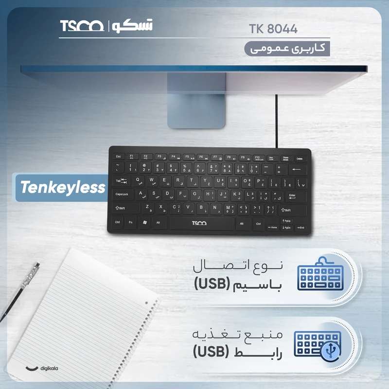 کیبورد تسکو مدل TK 8044 یکی از انتخابهای جمع و جور و سبک است که برای کارهای روزمره و تایپ مناسب است. طراحی کوچک و Responsiveness خوب، کارایی راحت و تایپ طولانی بدون خستگی را فراهم میکند. همچنین، قابلیت اتصال آسان و همخوانی با دستگاههای مختلف از مزایای این محصول محسوب میشود.