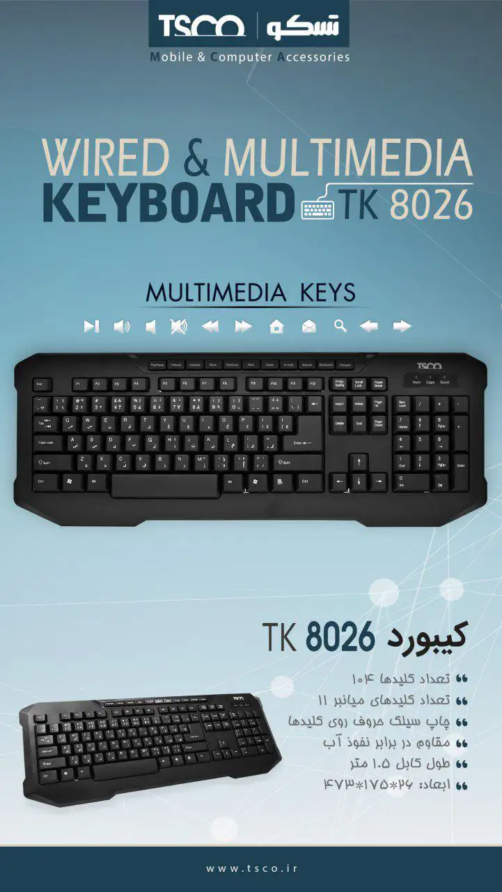 کیبورد تسکو مدل TK 8026 با حروف فارسی به عنوان یک گزینه عالی در رنج قیمتی خود شناخته میشود. کاربران به کیفیت ساخت بالا، نرم و بیصدا بودن دکمهها، و طراحی کاربرپسند آن اشاره کردهاند. همچنین، وجود کلیدهای میانبر و دکمههای مولتیمدیا برای راحتی بیشتر کاربران مهم بوده است و بسیاری از خریداران از عملکرد آن در طولانی مدت راضی هستند